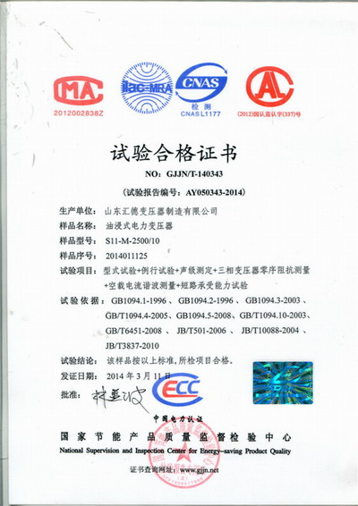 S11變壓器資質(zhì)
